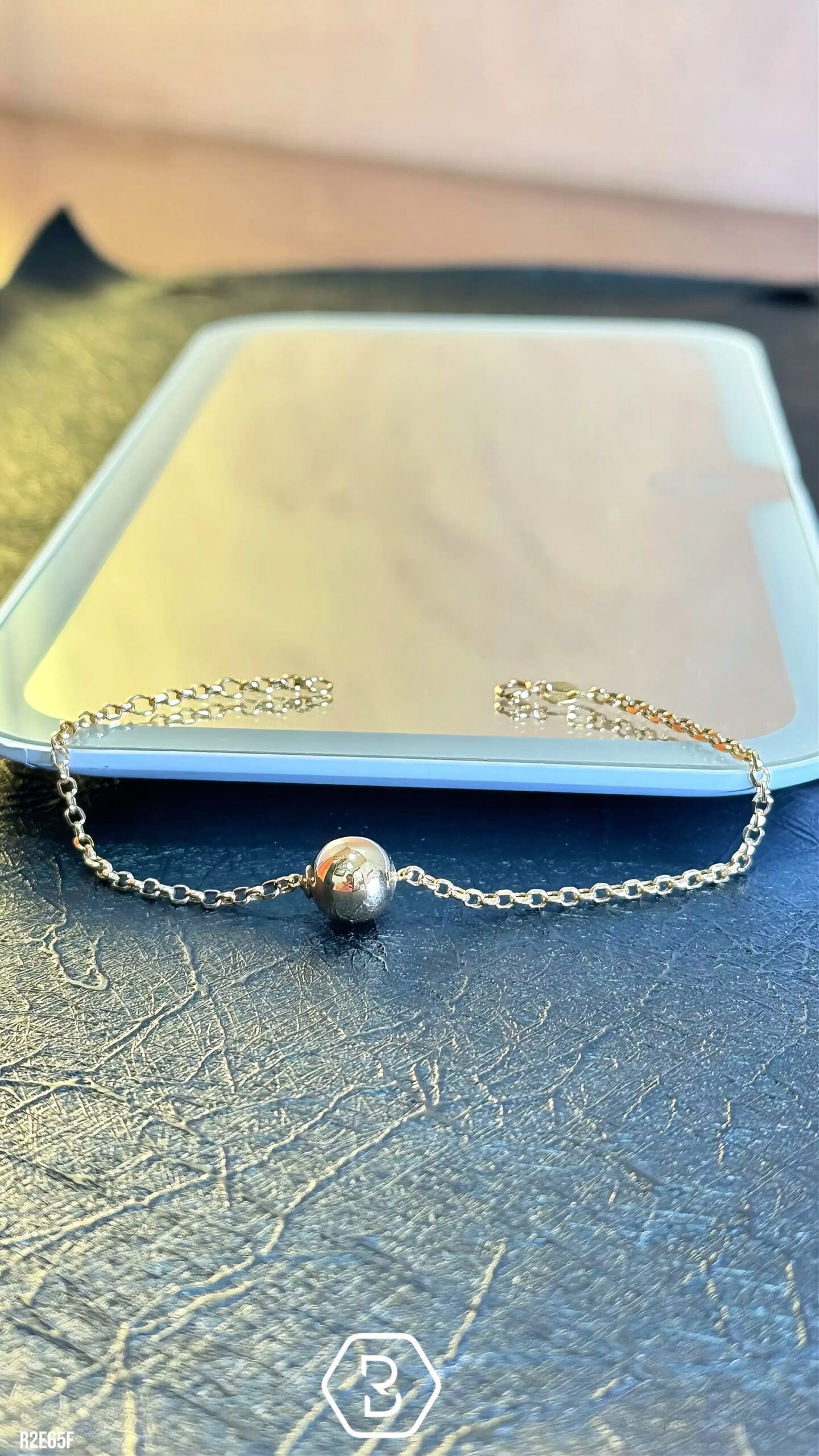 Gourmette délicate en or, sublimée par une sphère centrale parfaitement polie, symbole d’unité, d’équilibre et d’éternité.