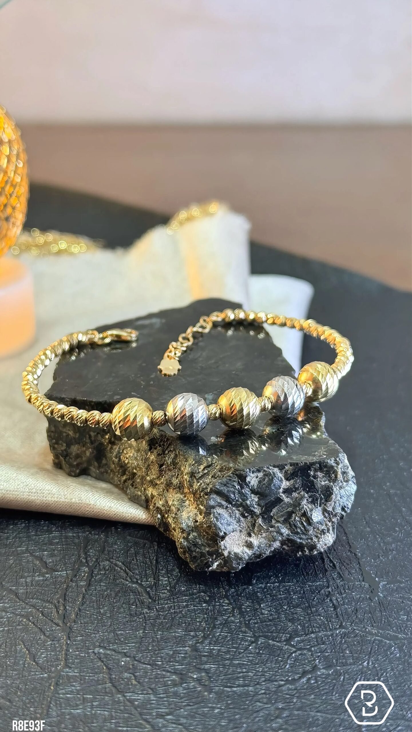 Perles d’Andalousie est un bracelet raffiné aux perles facettées, mêlant subtilement l’or et l’argent Or pour un éclat lumineux et harmonieux.