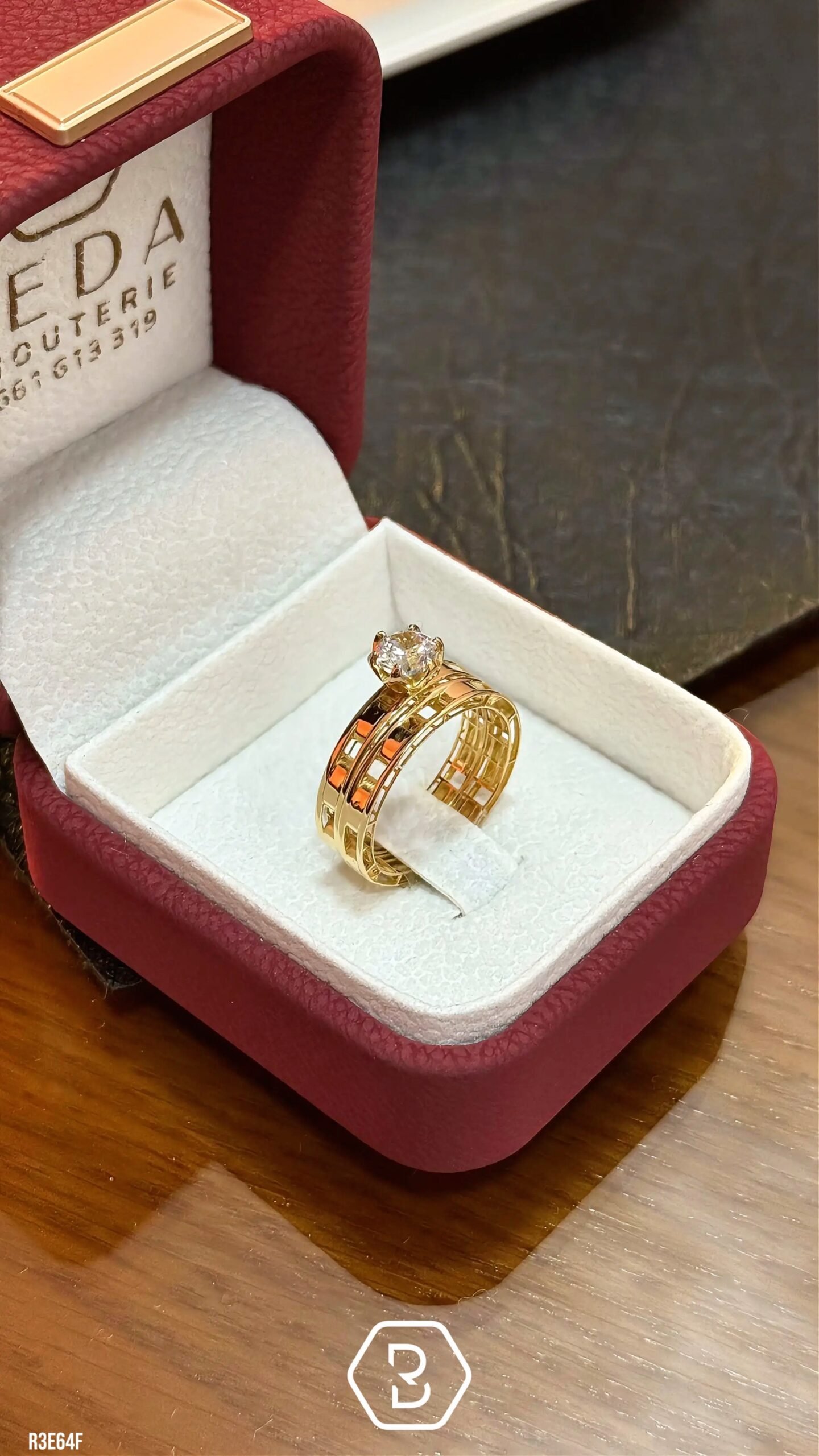 La bague Serment de Lumière incarne la promesse pure et éternelle de deux cœurs unis. Son anneau doré aux lignes délicatement ajourées enlace une pierre centrale éclatante, symbole de sincérité, de fidélité et de clarté dans le mariage. Une bague qui reflète un amour vrai, lumineux et destiné à durer pour toujours.