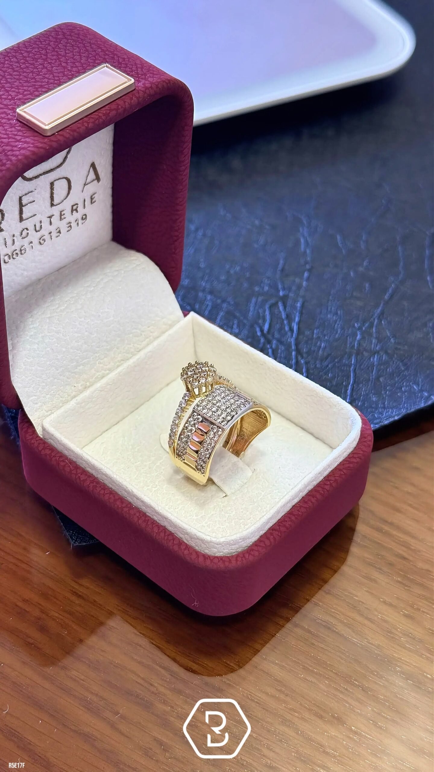 La bague Trône d’Éternité symbolise l’union souveraine de deux âmes. Son design majestueux, sublimé par un pavage éclatant et des lignes dorées sculptées, évoque la force de l’engagement et la noblesse d’un amour destiné à régner pour toujours. Une bague de mariage qui ne se contente pas de promettre l’éternité, elle l’impose.